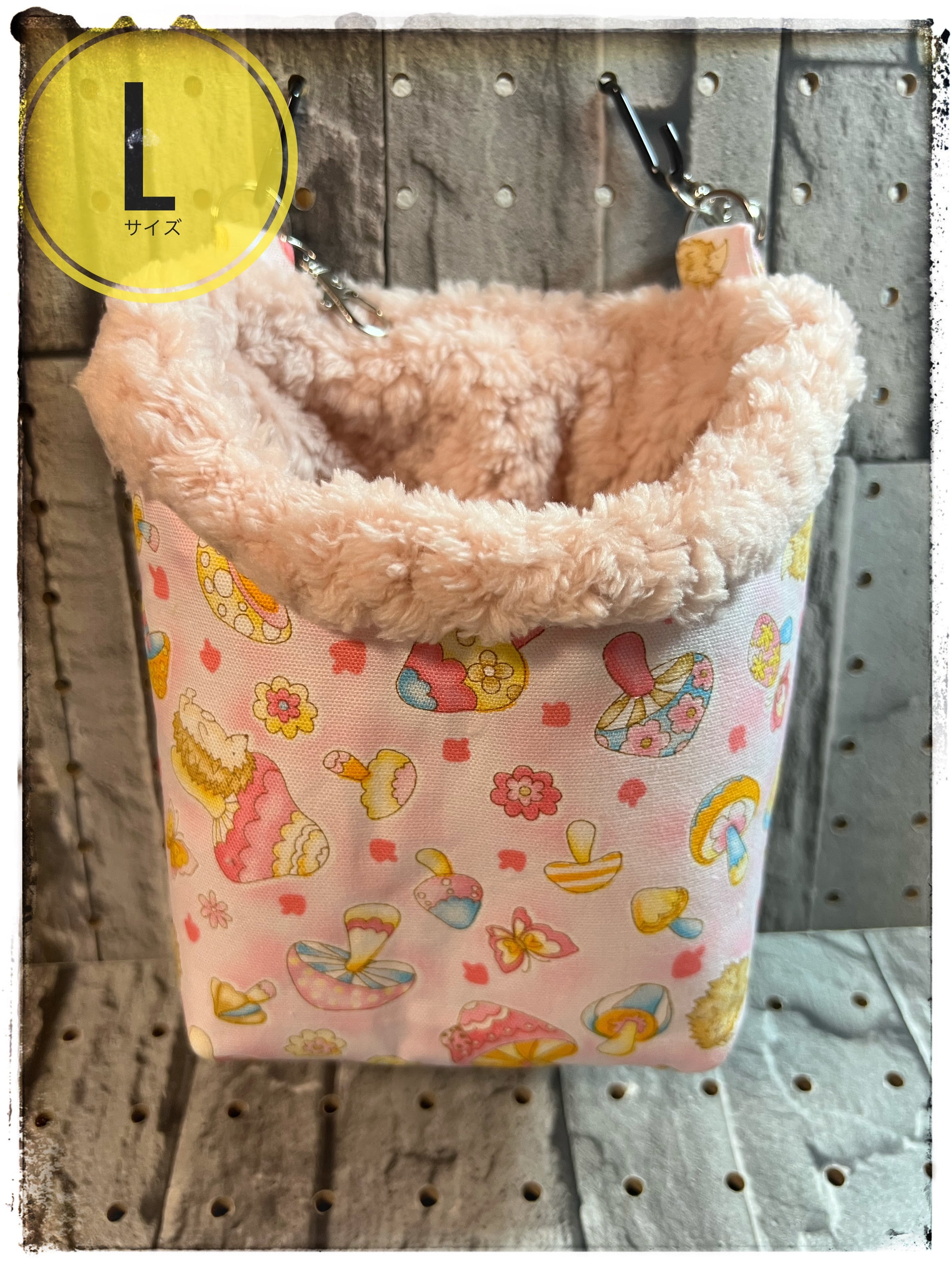 モモンガポーチ☆ハリネズミとキノコ ピンク Lサイズ