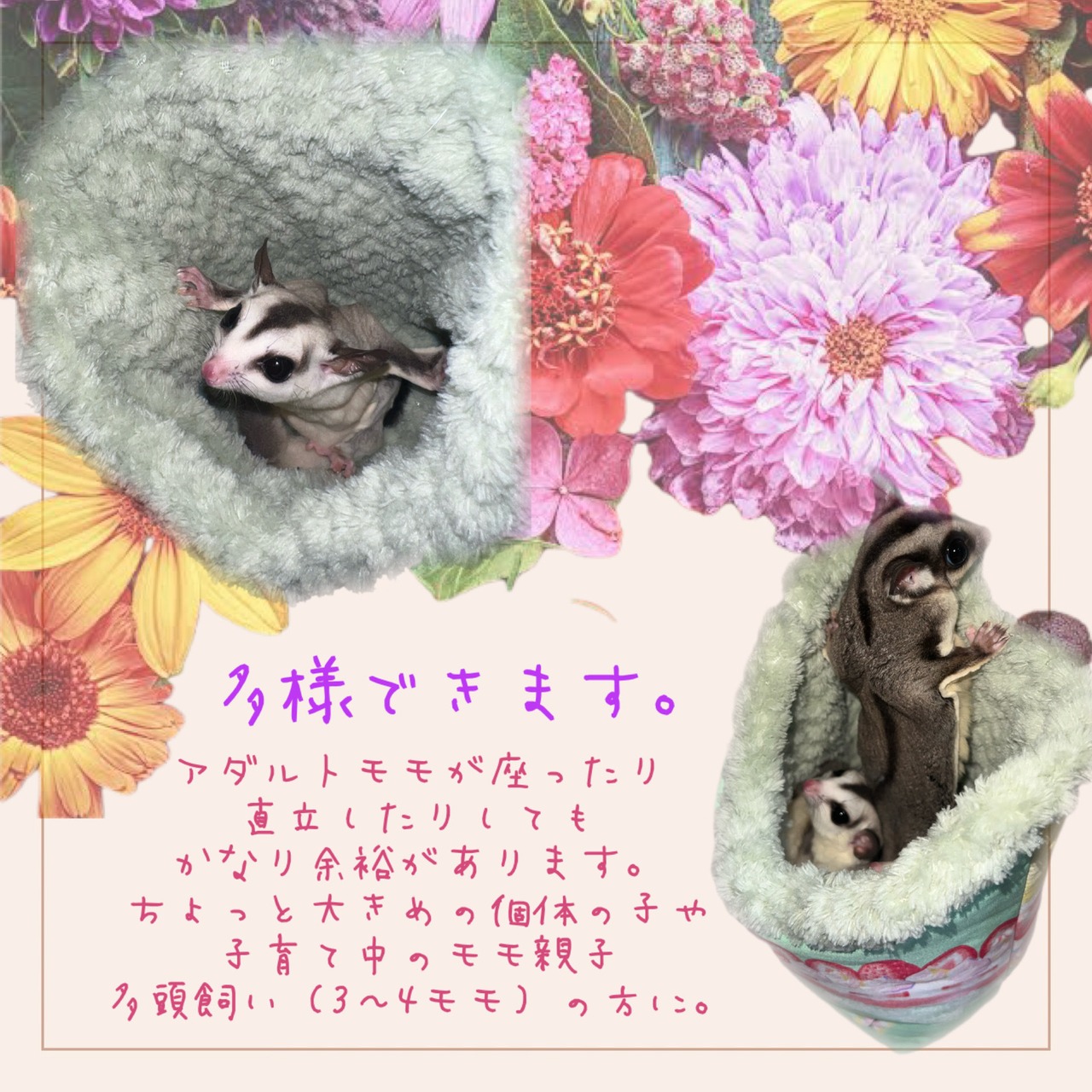 フクモモちゃんと触れ合いたい、そんな思いを込めてこの形のフクロモモンガポーチを作りました。