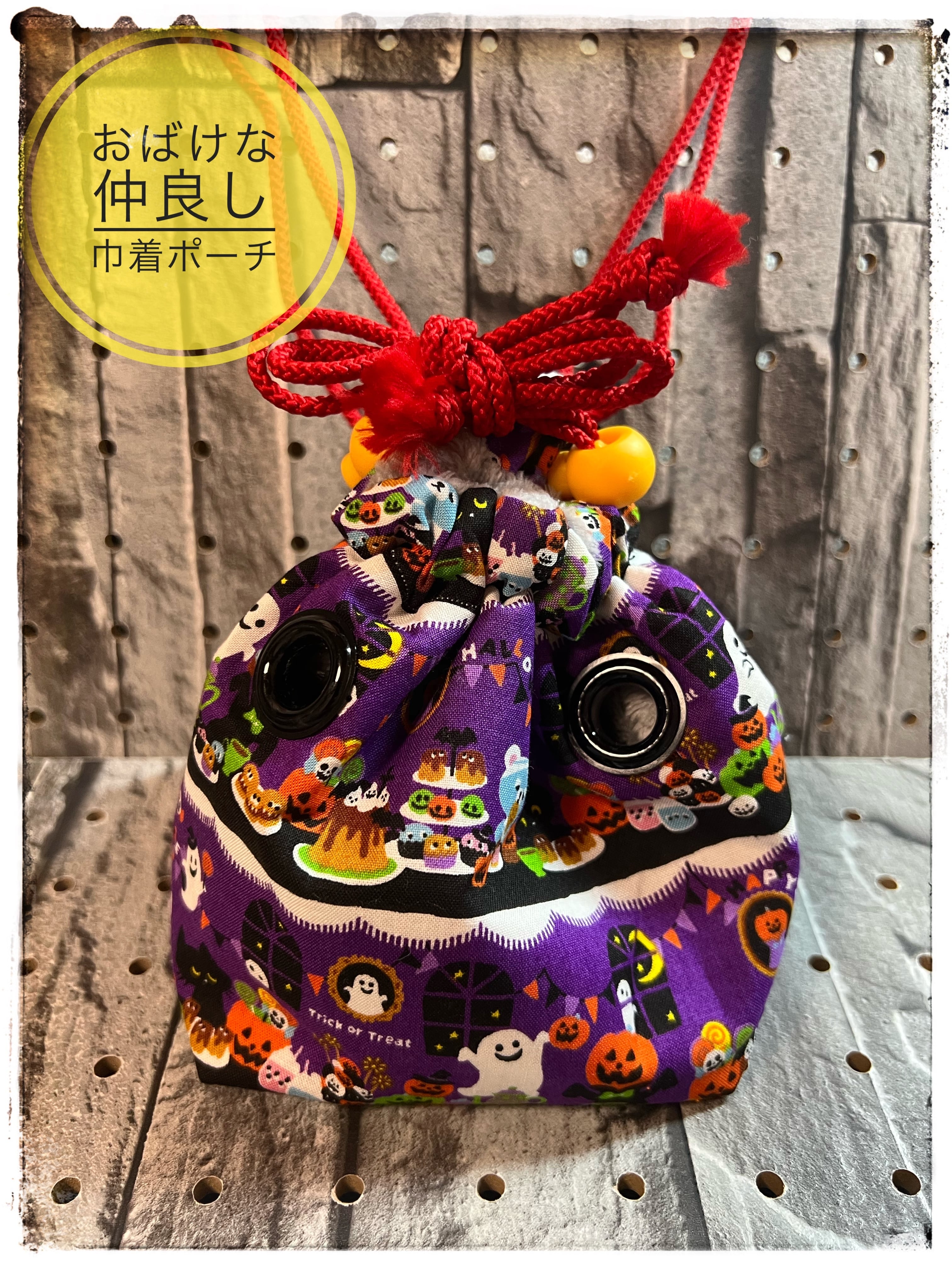 ちょっとおばけみたいな見た目の巾着風仲良しポーチです。