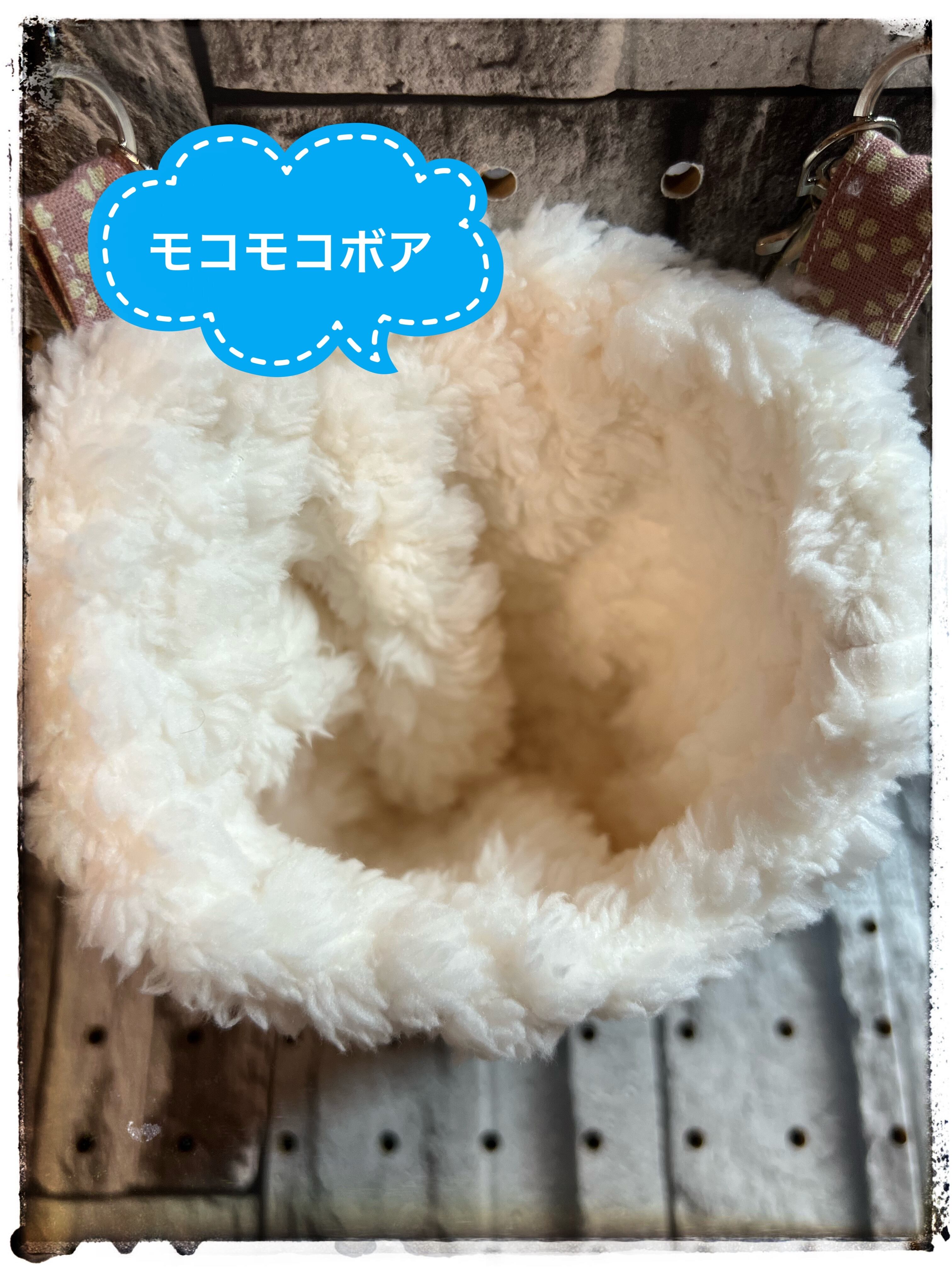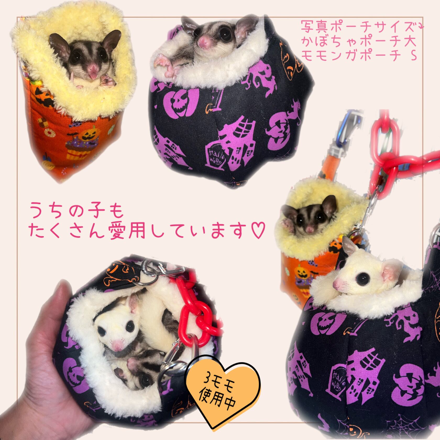 フクモモちゃんと触れ合いたい、そんな思いを込めてこの形のフクロモモンガポーチを作りました。